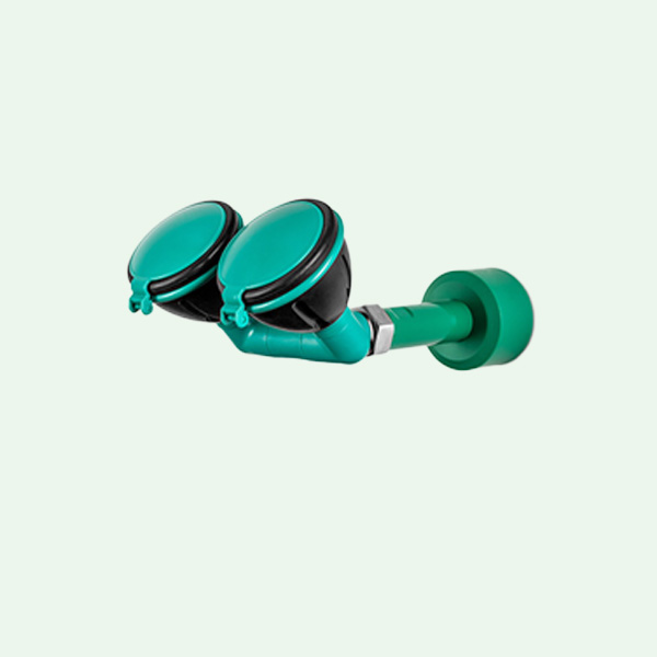 Die richtige Strahlhöhe und ein normgerechtes Strahlbild werden durch den integrierten Mengenregulator unabhängig vom anstehenden Wasserdruck erreicht. Die Gummimuffen um den Brausekopf schützen den Hilfesuchenden vor Stoßverletzungen. Staubabdeckkappen auf dem Brausekopf schützen gegen Verschmutzung und öffnen bei Betätigung der Augendusche durch den Wasserdruck selbständig. Die großen Bohrungen in den Brauseköpfen verhindern stehendes Wasser und somit Verkalkung.