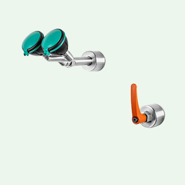 Die Augendusche ist mit zwei B-SAFETY Hochleistungsbrauseköpfen ausgestattet, die nicht nur die Vorgaben der DIN EN 15154-2:2006 und der ANSI Z358.1-2014 erfüllen, sondern auch für eine großflächige Wasserverteilung sorgen. Dadurch werden auch die Regionen um die Augen versorgt und die Platzierung der Augen in dem Wasserstrahl ist unproblematisch. Der begrenzte, gleichmäßige und vor allem weiche Wasserstrahl ist optimiert für das Ausspülen von Chemikalien im Auge.