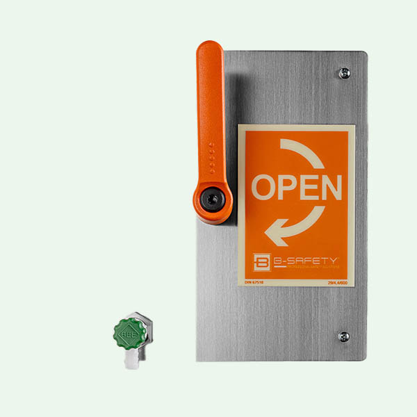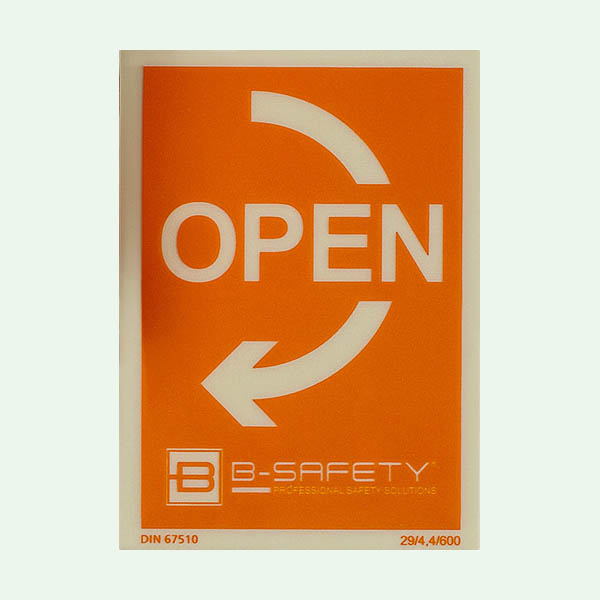 • Hinweisschild “OPEN“ für die verwechslungsfreie Anwendung im Notfall, orange, langnachleuchtend gemäß DIN 67510